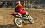モトクロス用レーサーをベースとして仕立てられる最近の単気筒ダートトラックマシン "DTX" に、カテゴリーのアイデンティティを主張させるためには、フロントフェンダー取り外しこそが明快な表現だと考える関係者は多く存在します。結論が出る話題ではありませんが、定期的に巻き起こる、"フロントフェンダー・いる or いらん論争" は、本場アメリカを中心とした、この種目のファン層の厚さと、歴史の奥深さを感じさせる、永遠のテーマのひとつだと言えるでしょう。