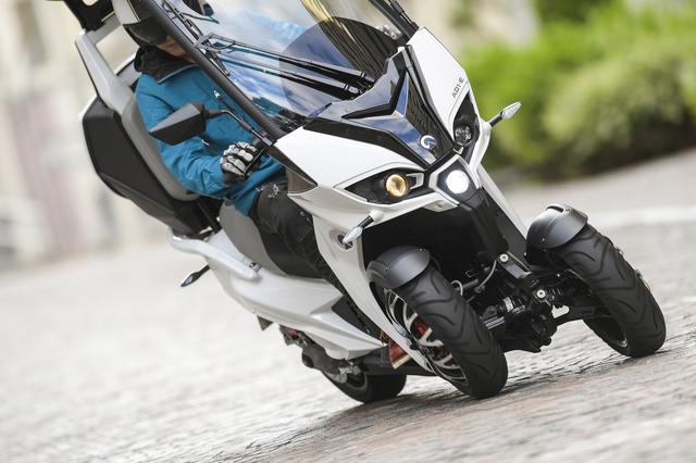 接地感がクルマに似ているんです。車体を傾けて曲がるのはバイクと同じなんですが、タイヤが踏ん張っている感触が四輪車っぽく感じられます。