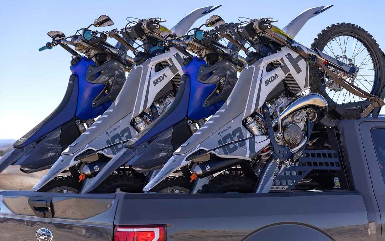 いくらアメリカ製フルサイズピックアップだからって、フルサイズMXバイクを4台横積みはAIお絵描きの写真遊びだろうと思いましたが、実はどうやらこれ実写だしすでに製品化されているらしい、です。えーもうこれロングベッドとかいらないじゃん。そうか屋根に前輪載せるかぁ・・・盲点かも?
